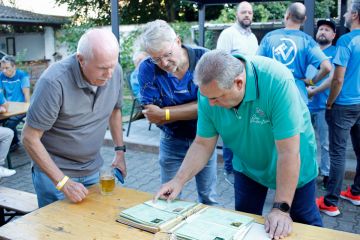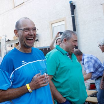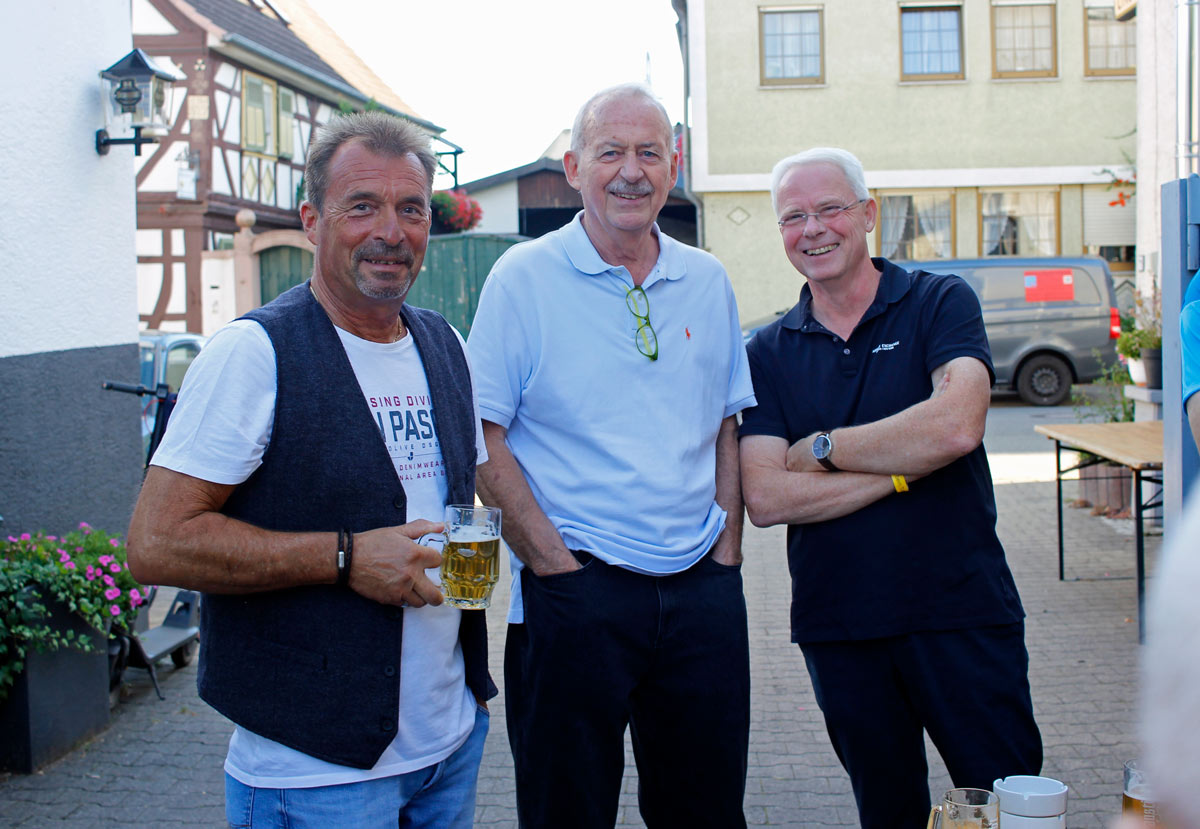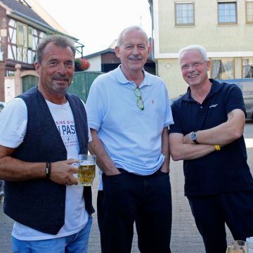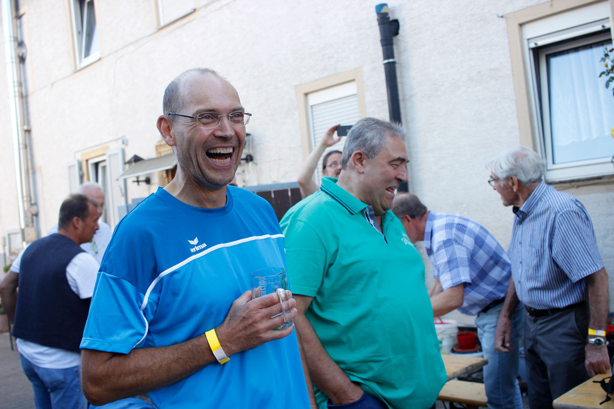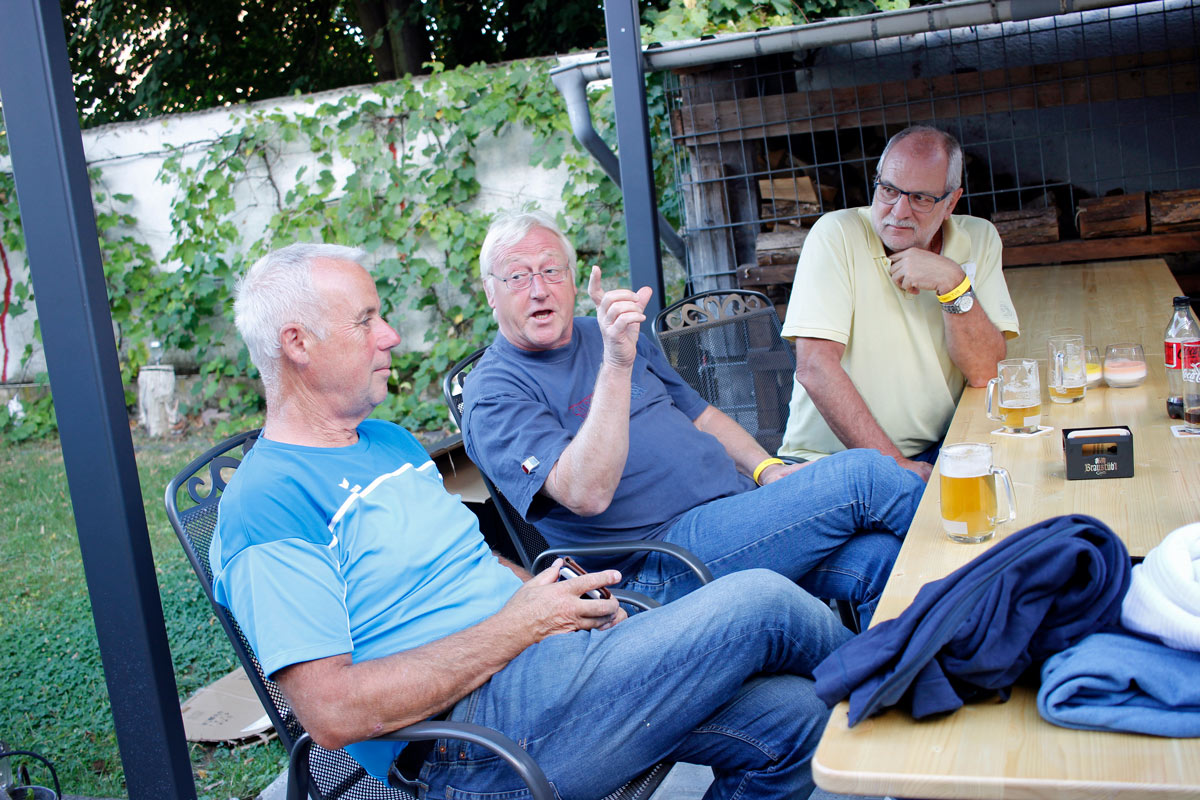 Hans „Hennes“ Best war mit seinen stolzen 88 Jahren der älteste Teilnehmer. Die weiteste Anreise hat unser ehemaliger Erst-Mannschafts-Spieler Heiko Loeppke. Er wohnt jetzt bei Hamburg und hat es sich nicht nehmen lassen, auf einen Abstecher vorbei zu schauen. Bei Steaks, Würstchen und selbst gemachten Salaten sowie ordentlich Freibier, das von der Darmstädter Brauerei gesponsort wurde, wurde die ein oder andere Anekdote aus früheren Zeiten noch mal aufleben lassen.
