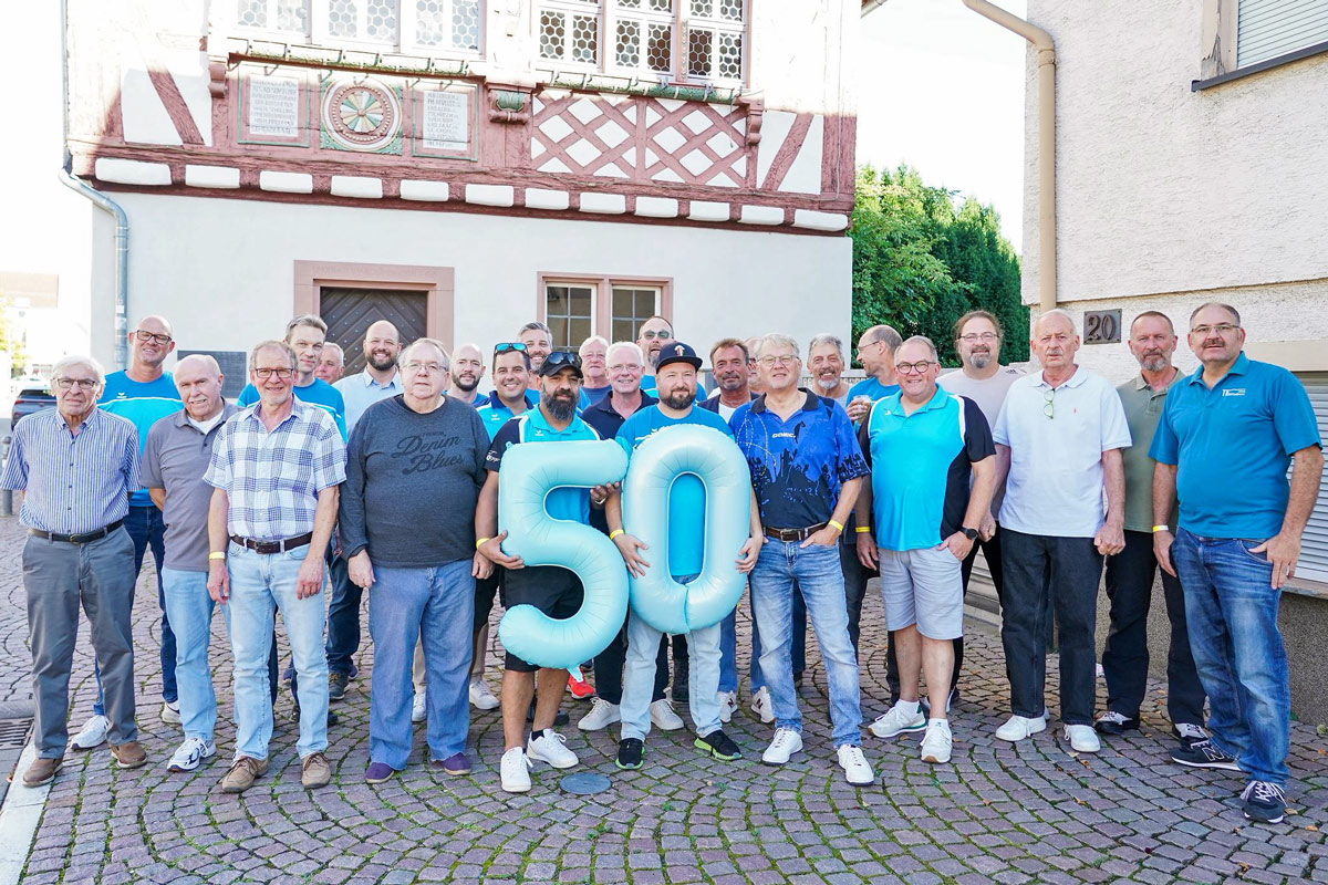 Der Highlight 2025 war natürlich die große Jubiläumsfeier mit vielen ehemaligen Tischtennis Kameraden bei Gerda und Petra in der Linde. Bekleidet in den neuen Jubiläums-Trikots begrüßten die aktuellen Spieler viele ehemalige Weggefährten bei bestem Wetter im Hof der Linde. Bei Steaks, Würstchen, selbst gemachten Salaten und ordentlich „Freibier“, gesponsort von der Darmstädter Brauerei, wurde die ein oder andere Anekdote aus früheren Zeiten noch mal aufleben lassen. Hans „Hennes“ Best war mit seinen stolzen 88 Jahren der älteste Teilnehmer. Die weiteste Anreise hatte unser ehemaliger 1. Mannschafts-Spieler Heiko Löppke. Er wohnt jetzt bei Hamburg und hat es sich nicht nehmen lassen auf einen Abstecher vorbei zu schauen. Schee wars!