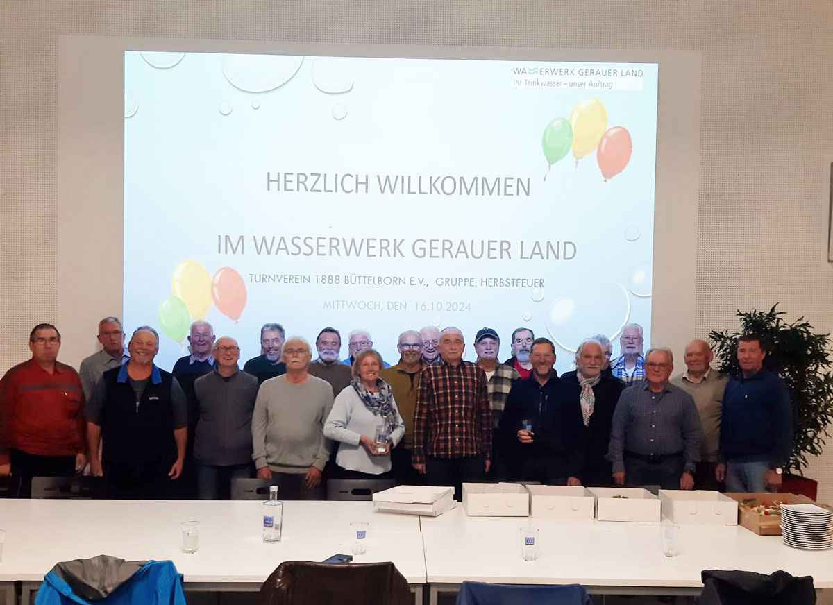 Es ist wieder Ferienzeit und damit auch der richtige Zeitpunkt für ein "Alternativprogramm". Dabei ist es schon beeindruckend, was unsere Turngruppe "Herbstfeuer" immer wieder außerhalb des Sportprogramms auf die Beine stellt. So auch in der ersten Woche der Herbstferien, wo die Truppe mit zahlreichen Teilnehmern inklusive Trainerin Dagmar Kraus das "Wasserwerk Gerauer Land" besucht hat.