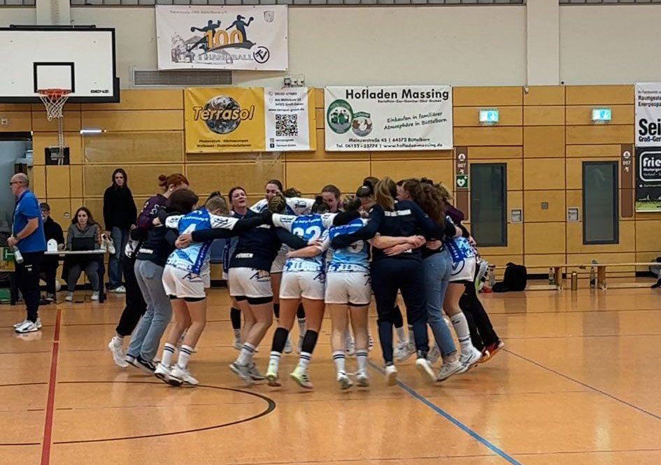 Was eine Dramatik am Samstagabend in der Büttelborner Sporthalle. Unsere Handballerinnen führen drei Minuten vor Schluss mit 21:18, verlieren den Faden und kassieren Sekunden vor dem Ende den 21:21-Ausgleich. Doch Coach Thomas Gölzenleuchter nahm vier Sekunden vor Schluss noch eine Auszeit und gab die Taktik vor: "Voll druff". Und tatsächlich schweißte Leonie Raiß mit dem Schlusspfiff das runde Leder in den Winkel zum 22:21-Sieg.