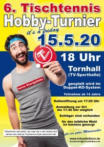 Als nächstes Highlight der TT-Abteilung steht das schon Traditionelle Hobby Turnier am Freitag den 15.05 auf dem Programm. Die TT-Spieler vom TVB würden sich über eine rege Teilnahme sehr freuen.
