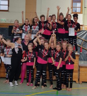 In der nächsten Kategorie, den Kindern 2, gab es wieder eine hohe Teilnehmerzahl von 7 Gruppen, unter denen sich auch unsere Mädels der Gruppe Just Dance befanden. Mit ihrer Schnelligkeit in den Bewegungen, dem tollen Strahlen, das sie beim Tanzen aufgesetzt hatten, und kreativen Hebungen verpassten sie das Treppchen nur knapp und wurden vierter.