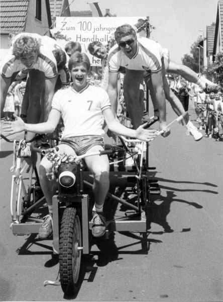 Die Handballer haben ihr Motto am Rosensonntagsumzug dem Vereinsjubiläum angepasst. Zwei Motivwagen sollen es werden, mittlerweile wird schon fleißig gebaut.