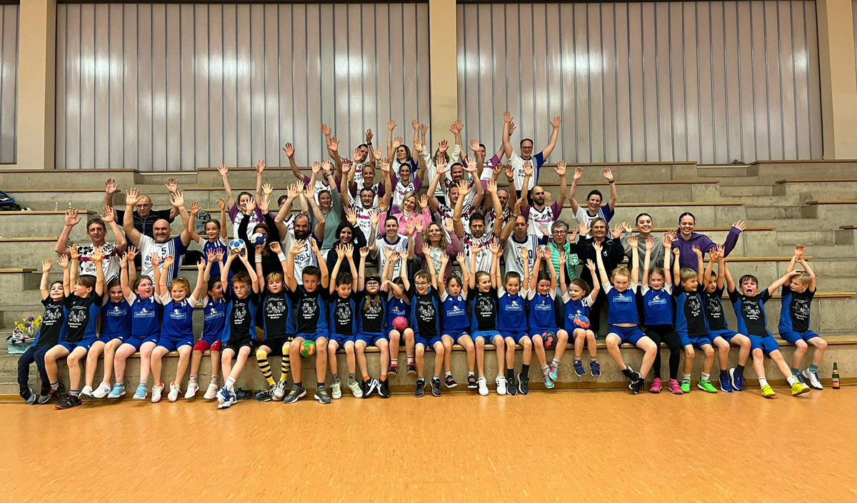 Die Mini 1 haben die Saison traditionell mit einem Eltern-Kind-Spiel beendet. Am Mittwoch vor den Ferien trafen sich die 24 Kinder mit ihren Eltern in der Sporthalle, um "Klein gegen Groß" Handball zu spielen. Der Abend klang mit leckerer Pizza aus. Der Jahrgang 2015 wechselt nach den Osterferien in die E-Jugend.