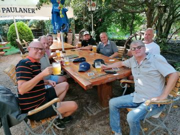 Am letzten Wochenende im August fand die alljährliche Fahrradtour der Tischtennis-Abteilung statt. Treffpunkt war um 12 Uhr beim Troja. Nach einer deftigen Stärkung mit türkischen Spezialitäten und diversen Kaltgetränken ging es Richtung Weiterstadt. Im Biergerten eines bekannten Möbelhauses wurde ein kurzer Zwischenstopp eingelegt. Weiter ging es Richtung Schneppenhausen in die Nickelsmühle, wo man(n) den Nachmittag verbrachte. Gegen 18 Uhr machten sich die Klepper-Brüder wieder Richtung Heimat auf. In Worfelden wollte man auf die dort stattfindende Kerb noch einmal zusammen anstoßen. Doch weder in der Ortsmitte, noch am Bürgerhaus war dies möglich. Hoffentlich wird unsere Kerb besser. Der Abschluss der Tour fand im Volkshaus in Büttelborn statt.