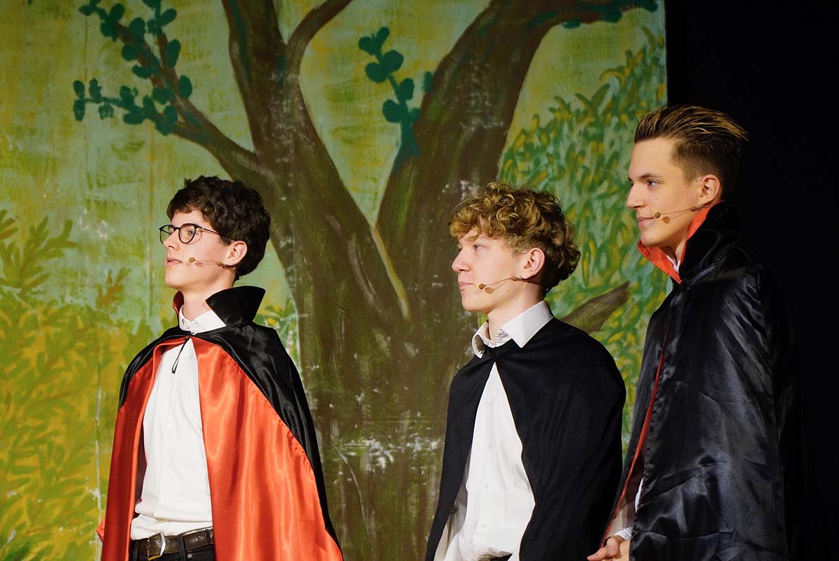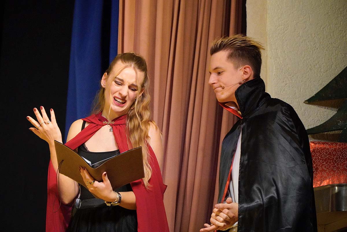 Die große Weihnachtsfeier am 12. Dezember begeisterte das Publikum mit dem Motto „Romeo, ein Weihnachtsvampir“. Erzählt wurde die Geschichte eines etwas anderen Vampirs, der lieber Kakao trank und von Weihnachten fasziniert war. Zum Abschluss der Aufführung feierten Hexen, Vampire und Menschen gemeinsam und sorgten für einen stimmungsvollen und unterhaltsamen Abend.