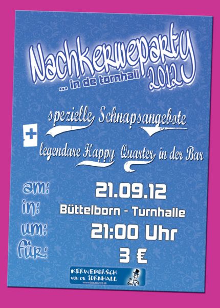 Für die Jugend und junggebliebenen steigt die 15. Nachkerweparty. Mit Happyquarter. Eintritt: 3,-- €