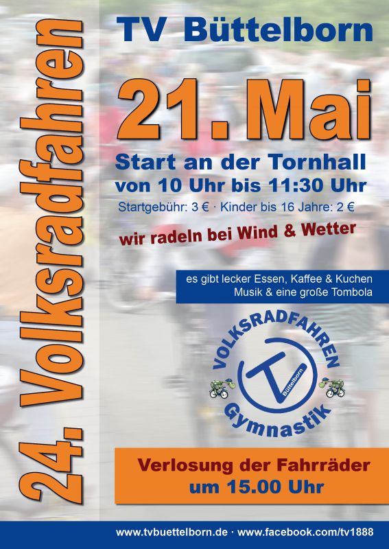 Am Sonntag, dem 21. Mai wird Bürgermeister Andreas Rotzinger um 10 Uhr an der Tornhall in der Friedrich-Ludwig-Jahn-Straße den Startschuss zum 24. Volksradfahren des TV Büttelborn geben.