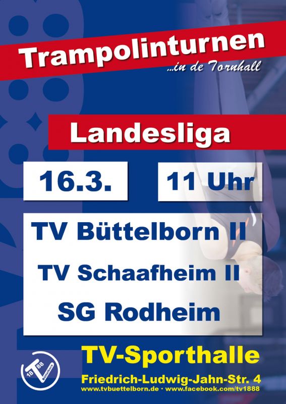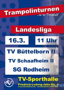 Trampolin-Landesliga - der TVB II turnt gegen den TV Schaafheim II und die SG Rodheim. Der Eintritt ist frei, für Essen und Trinken ist gesorgt.