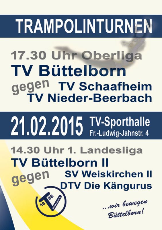 Erster Wettkampf der Trampolin-Oberliga. Unsere "Erste" trifft auf den TV Schaafheim und den TV Nieder-Beerbach. Der Eintritt ist frei.