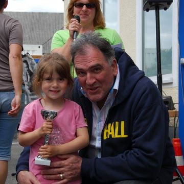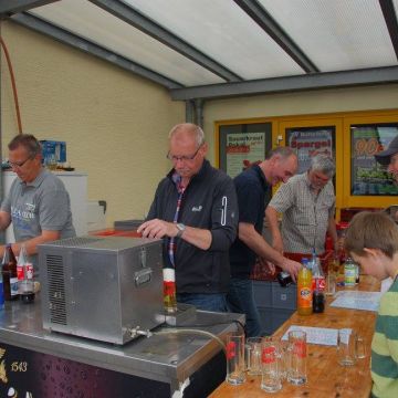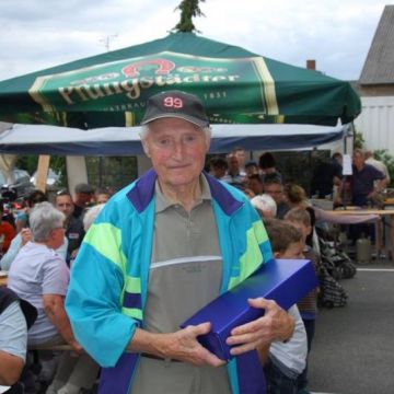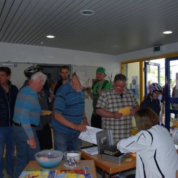 Am Ziel – der Tornhall – wieder angekommen, war das Angebot an Speisen, Getränken und Kuchen groß. Ute Kroiß begrüßte im Auftrag des abwesenden Bürgermeisters die Gäste und bedankte sich, da sie ja auch Teilnehmerin war, bei allen freiwilligen Helfern für die tolle Organisation und die gelungene Veranstaltung. Danach stand die Ehrung verschiedener Teilnehmer bzw. -gruppen auf dem Programm: Die jüngsten Fahrradfahrer waren Elisa Plahuta und Noah Petri, beide 4 Jahre alt, sie erhielten - vom Bürgermeister gestiftet – jeweils einen Pokal für ihre tolle Leistung. Erika Sack war die älteste Teilnehmerin mit 84 Jahren und bekam dafür ein Blumenpräsent. Adam Astheimer (85) erhielt als ältester aktiver Teilnehmer ein Weinpräsent des Weinguts Oswald. Die größte vereinsexterne Gruppe war diesmal die SKV mit 19 Radfahrern und die größte vereinsinterne Gruppe waren die Handballer mit 59 Radlern. Sie erhielten ebenfalls ein Präsent zur Stärkung. Die Spannung stieg, als die Fahrräder, gestiftet von der Firma Fahrrad Küchler Mörfelden-Walldorf, der Firma Holzbau Hirsch und der Firma Landschaftsbau Klink, verlost wurden. Glücksfee war die siebenjährige Alea, die die Gewinner ziehen durfte: Gewinnerin des Damenfahrrads war Marianne Schulz aus Dornheim, das Herrenfahrrad durfte der siebenjährige Nico Schöneberger mit nach Hause nehmen und über den dritten Preis, ein rotes Puky-Laufrad freut sich nun Jan Schneiders kleine Tochter.